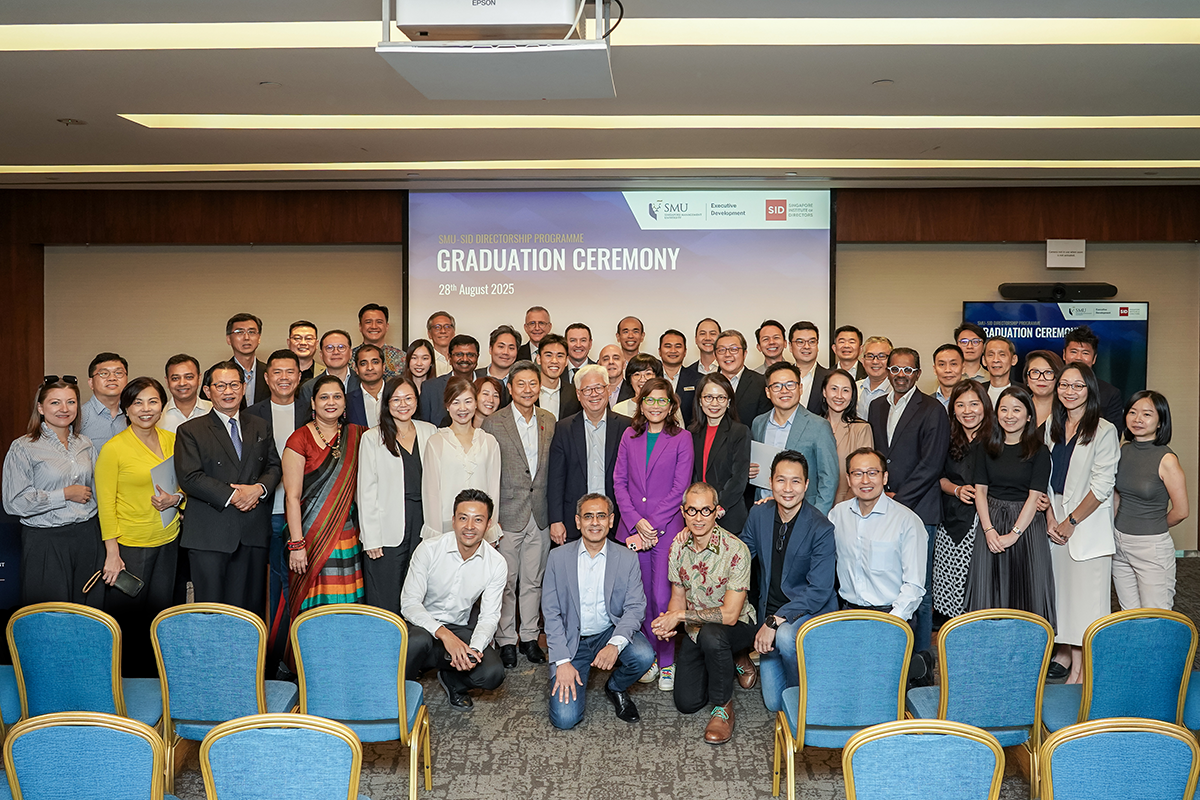 For professionals, board members or leaders seeking to deepen their understanding and capabilities in championing good governance, speak with Senior Manager for Short Courses, Desmond Ng at desmondngjj@smu.edu.sg or +65 6808 5393 to learn more about the SMU-SID Directorship Programme.