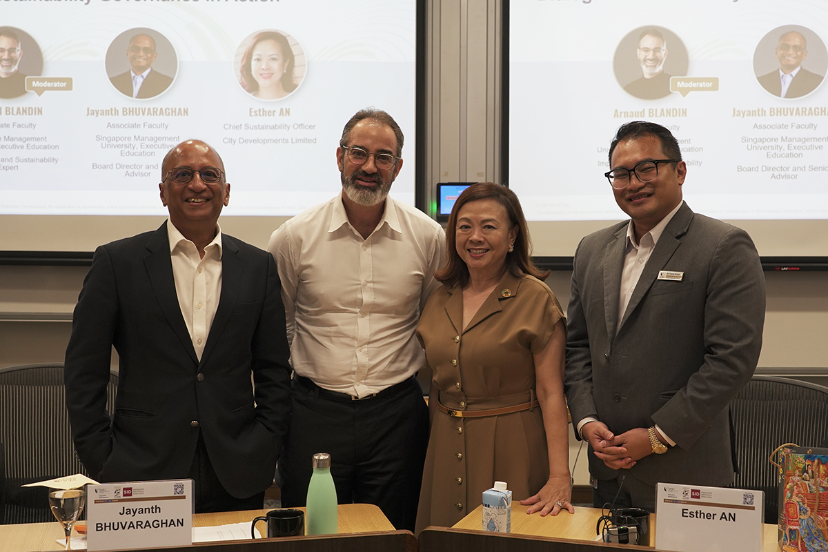 The session, which was part of the SMU-SID Directorship Programme (Module 5 on Sustainability Governance) by SMU Executive Development and Singapore Institute of Directors, considered how sustainability is evolving beyond reporting to becoming an intrinsic part of governance and value creation.
